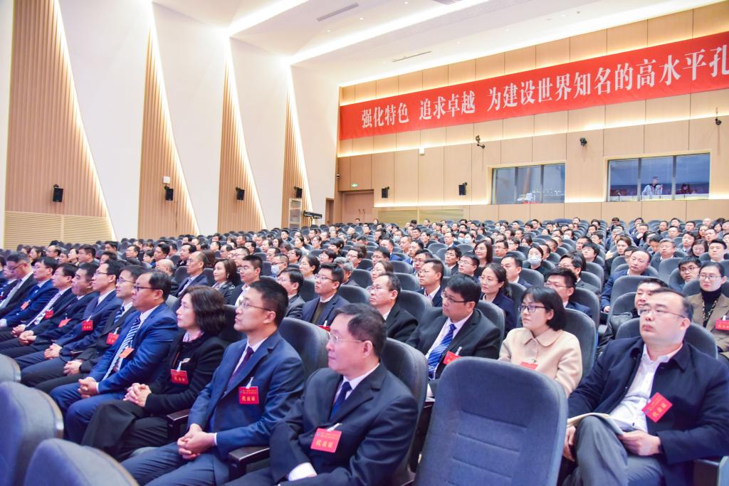 大会号召,全校教职员工要更加紧密团结在以习近平同志为核心的党中央周围,在学校党委的坚强领导下,全面贯彻党的教育方针,认真落实立德树人根本任务,强化特色、追求卓越,埋头苦干、笃行不怠,为建设世界知名的高水平孔子家乡大学、实现华体会官方网的高质量崛起而共同奋斗!