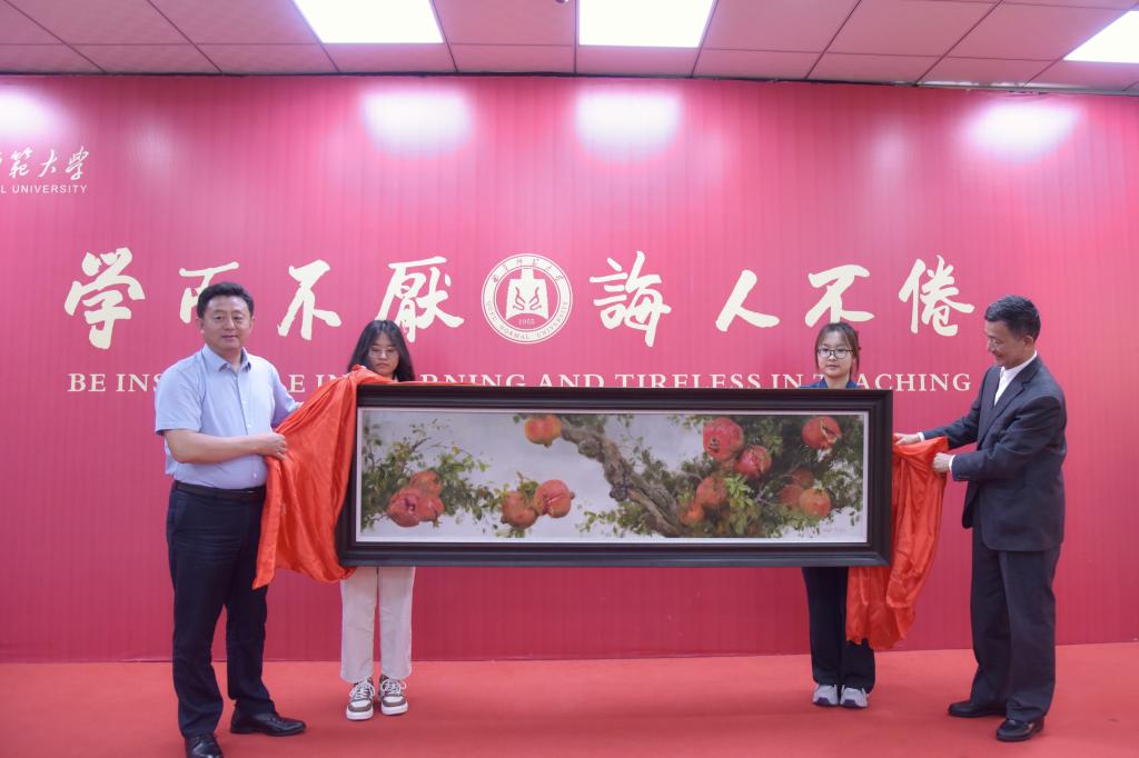 两地校友还向学校赠送了校友的个人画作、著作等纪念品。