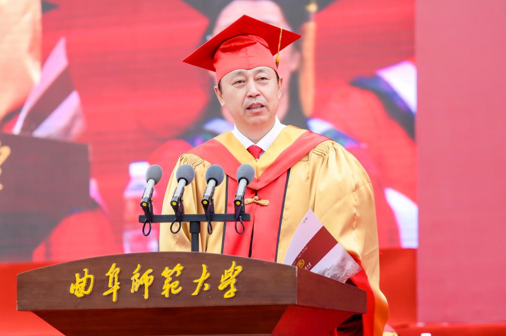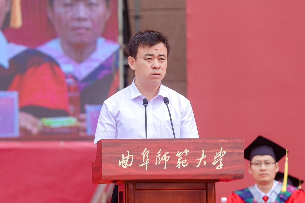 “那些曾经的困境,会使你们更具不畏征途坎坷的勇气和毅力。”张洪海说,2023届毕业学子的青春历程因为“疫情大考”而显得更为厚重。疫情虽使同学们的求学之路历尽艰辛,但丝毫没有影响大家励志进步、追求卓越。在2023届毕业生中,有7438人次获得各类奖、助学金;218人次获得国家级荣誉;12910人次获得省级、校级荣誉;一批学霸宿舍集体上岸,在求学之路上继续深造;一批师范学子走上三尺讲台,擦亮孔子家乡大学的师范招牌;一批最美同学投身基层岗位,让青春之花绽放在祖国最需要的地方。