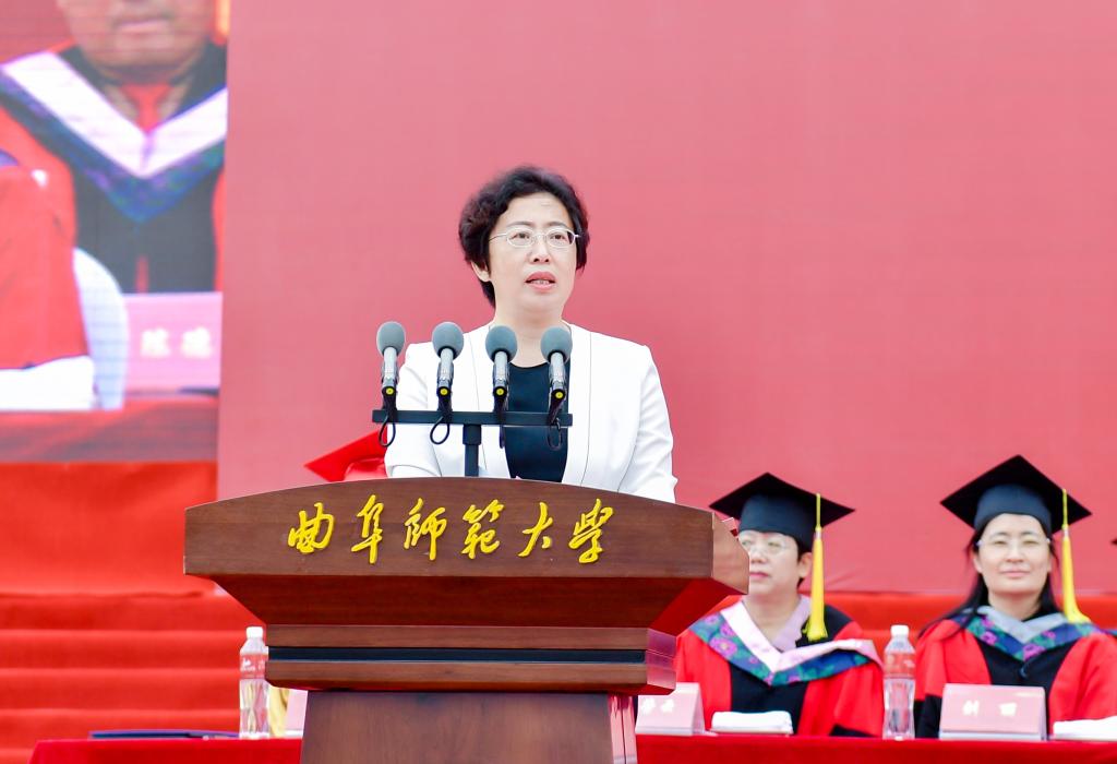 “今年开始,我们将为曲阜师大新生赠票游‘三孔’,驻曲高校历届毕业校友都可免费参观‘三孔’,我们以城市之名致敬青春,诚邀广大校友常回家看看。”曲阜市委书记李丽出席毕业典礼时祝福同学们带着圣城凝结的深情厚谊扬起顺航之帆,她期待毕业学子们再成圆梦曲阜的“奋斗者”,她表示:“只要有利于曲阜师大做大做强的事,只要有利于曲阜师大师生的事,我们都将不遗余力、全力支持!”