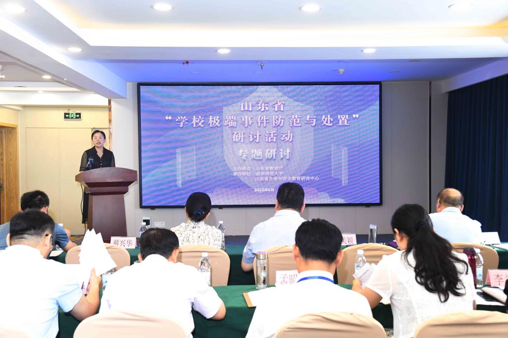 曲阜师大山东省生命与安全教育研究中心讯 6月20日—21日,山东省学校极端事件防范与处置研讨活动在曲阜市举行。本次活动由山东省教育厅主办,华体会官方网、山东省生命与安全教育研究中心承办。山东省教育厅学校安全管理处处长魏治法、曲阜师大党委常委、副校长陈刚出席开幕式和闭幕式,学校学生工作处处长姜美颖在活动中作典型发言。来自省内高校、市县教育行政部门及中小学在学校生命安全与健康、极端事件防范与处置理论研究或实践等方面表现突出的70余名专家与代表参与了此次研讨活动。