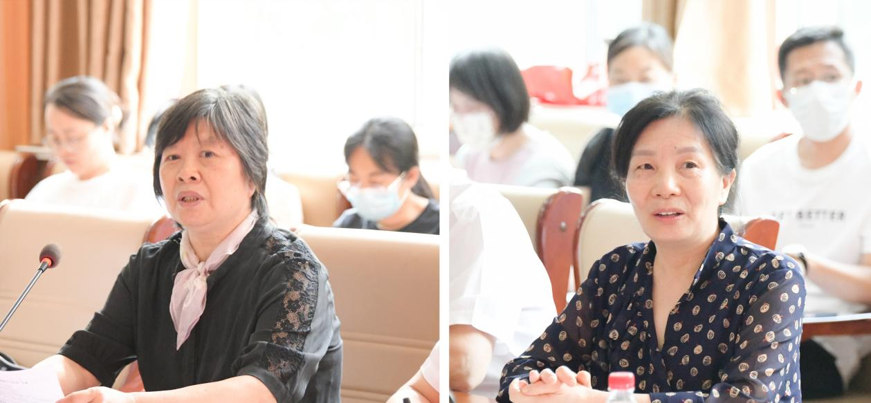 外国语学院孔蕾教授做经验分享,翻译学院教工党支部书记周磊谈心得体会