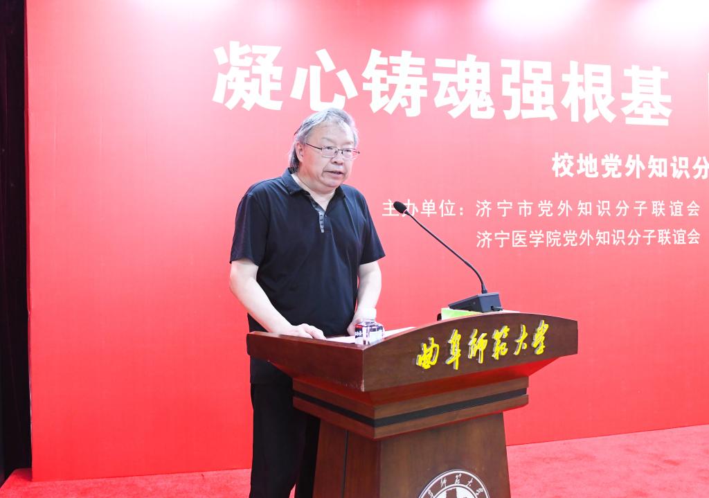 济宁市党外知识分子联谊会副会长、华体会官方网党外知识分子联谊会会长、书法学院教授乌峰在开幕式上发言。