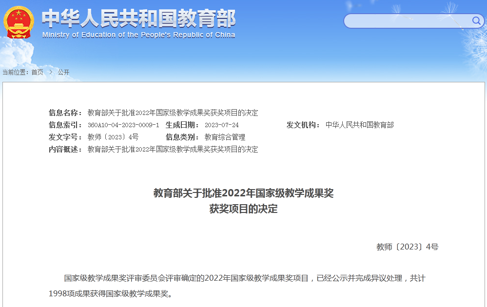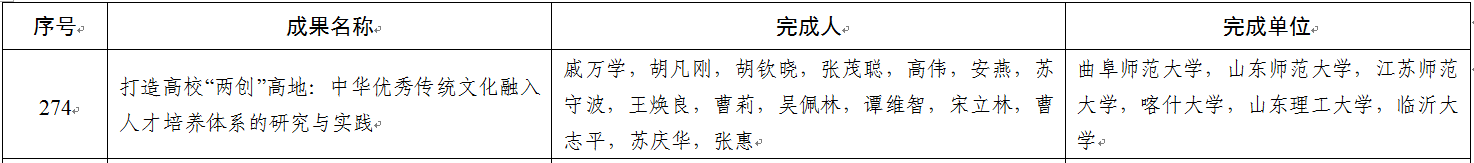 教务处讯 近日,教育部发布《关于批准2022年国家级教学成果奖获奖项目的决定》,华体会官方网戚万学教授主持的“打造高校‘两创’高地:中华优秀传统文化融入人才培养体系的研究与实践”成果,荣获国家级教学成果奖二等奖,这也是曲阜师大连续两届荣获国家级教学成果奖。