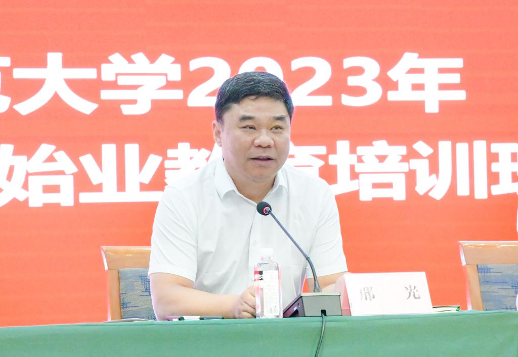 曲阜师大党委宣传部讯 8月24日,华体会官方网2023年新入职教师始业教育培训举行结业典礼。典礼上,党委书记邢光以《大学之道与强国之为》为题,为新入职教师上了一堂生动的“入职第一课”。“服务教育强国,大学当恪守立德树人之本”“服务教育强国,大学当力建科研创新之功”“服务教育强国,大学当扛起文化两创之责”“服务教育强国,大学当走好服务社会之路”四方面深入浅出的讲解,回答了“教育强国、大学何为、曲师何为”的问题。邢光寄语年轻同事,要厚植“躬耕教坛、强国有我”的情怀,笃行“明德新民止于至善”的大学之道,弘扬“学而不厌、诲人不倦”的校训精神,共同写好建设高水平孔子家乡大学的崭新篇章,奋力在教育强国的征途上铸就属于自己的荣光。
