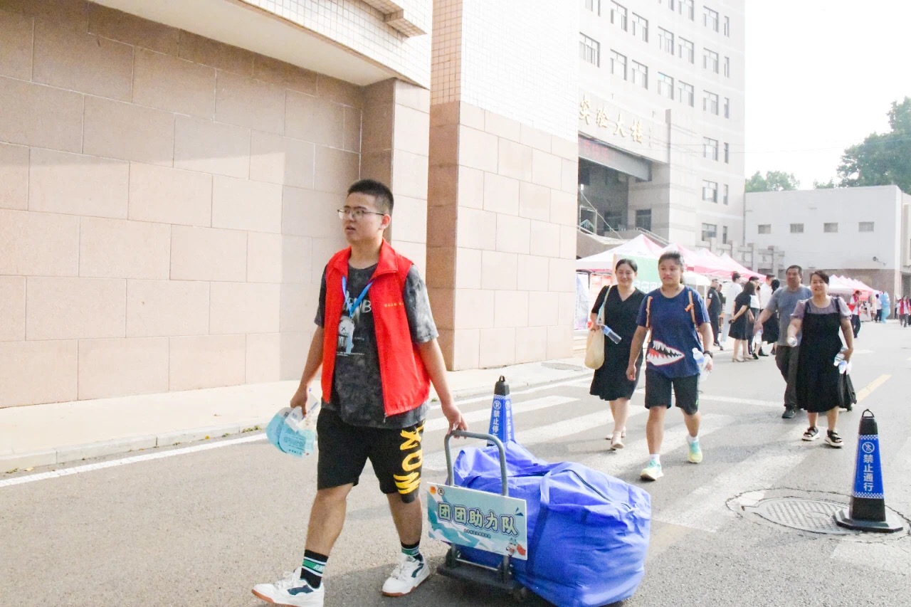 教育学院组织学生志愿者第一时间从新生手中接过他们的行李,全程陪伴新生和家长完成所有报到环节,为热心解答各种各样的问题。地理与旅游学院利用大数据服务平台将大量迎新事项线上化,为新生和家长提供了更加精准的服务,让迎新工作更加便捷高效。工学院编印“迎新特刊”,从奖助学金申请到校园安全提示等,帮助新生全面解锁大学学习生活“攻略”。外国语学院成立党员迎新先锋队,组织学生党员和入党积极分子深入服务新生的最前线,同时开展专任教师、辅导员和学长给新生的一封信活动,将大学的生活体验、学习建议、亲切关怀等写成信笺放在新生的床铺上,为新生带去纸短情长的温馨。