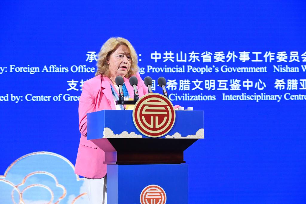 希腊亚里士多德大学跨学科研究中心主席、奥地利科学院院士斯芬多尼—门祖在开幕式上致辞