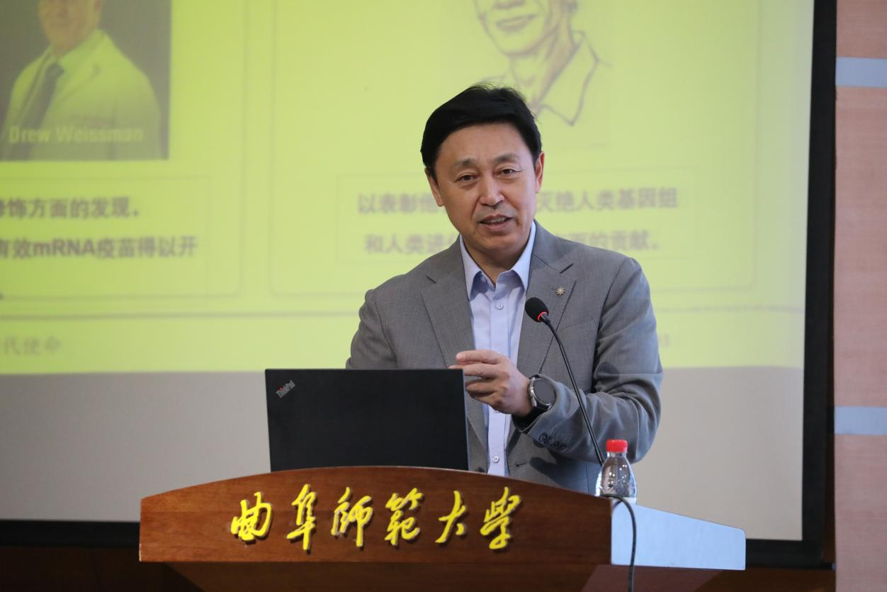 曲阜师大生命科学学院讯    为了让新生更顺利地适应大学生活,懂得专业及其发展方向,感悟大学精神,10月6日晚,党委副书记、校长张洪海教授以“走进生命科学,勇担时代使命”为主题,生命科学学院2023级新生开启“大学第一讲”。生命科学学院相关负责人、新生辅导员、班主任和全体新生参加大会。