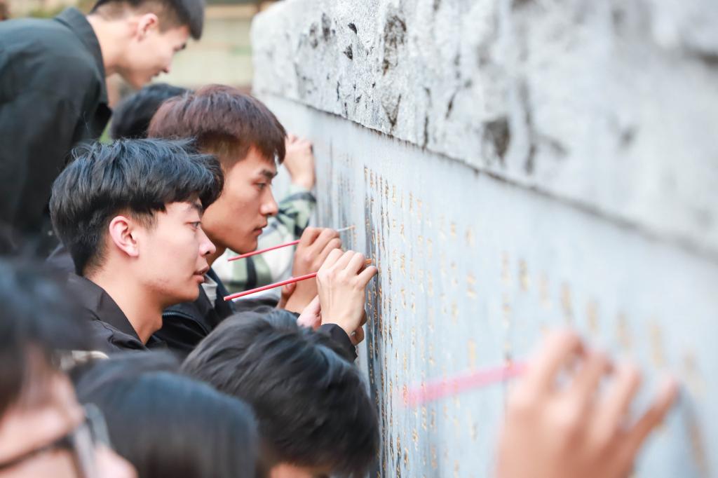 卢国强在现场指出,校园景观石刻是我们校园文化的重要元素,折射出传统文化办学特色,书法学院通过“我为曲园添彩”活动为校园景观石刻润色,彰显了专业特色优势,体现出对于大学文化的传承和守护,在活动的具体开展中要注重细节、确保效果。