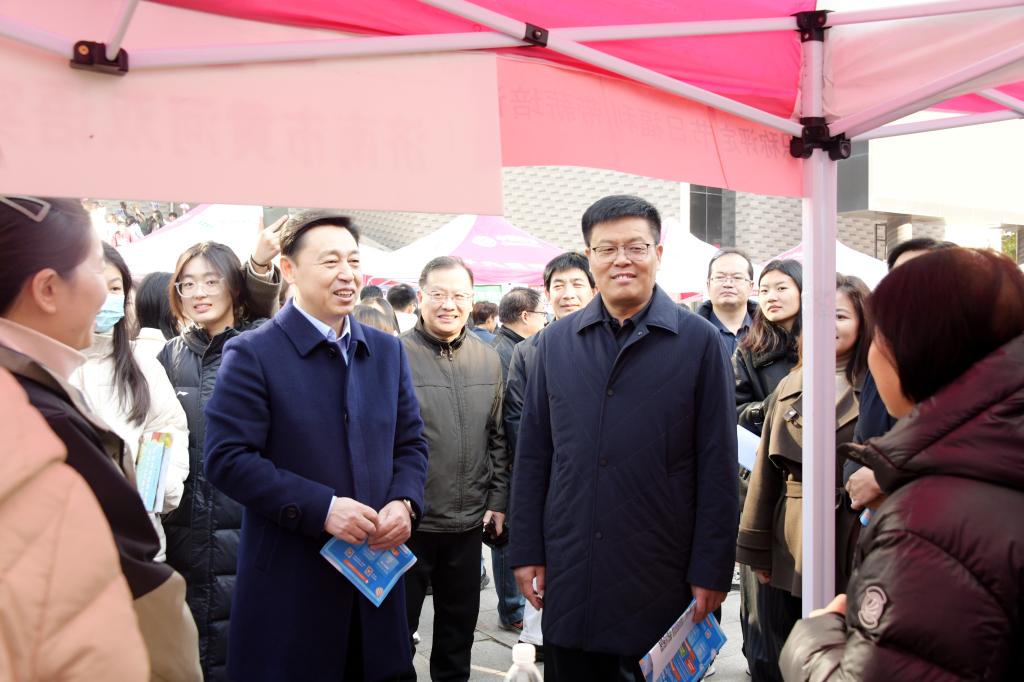 学生工作处讯  为发挥校园招聘主渠道作用,搭建用人单位与学生沟通的桥梁,推动毕业生高质量充分就业,11月19日,曲阜师大2023年秋季校园专场招聘会在明心扬帆就业广场举办。学校党委副书记、校长张洪海,学校党委副书记卢国强亲临现场与用人单位及毕业生洽谈交流。