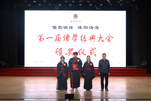比赛期间,历史文化学院大学生传统礼仪研修中心和洙泗学社为大家带来了礼仪之邦舞蹈、儒学经典朗诵、孔子讲学情景剧以及十二花神汉服走秀节目。本次大赛以丰富多彩的形式对话经典,展现了儒学经典文化的魅力。