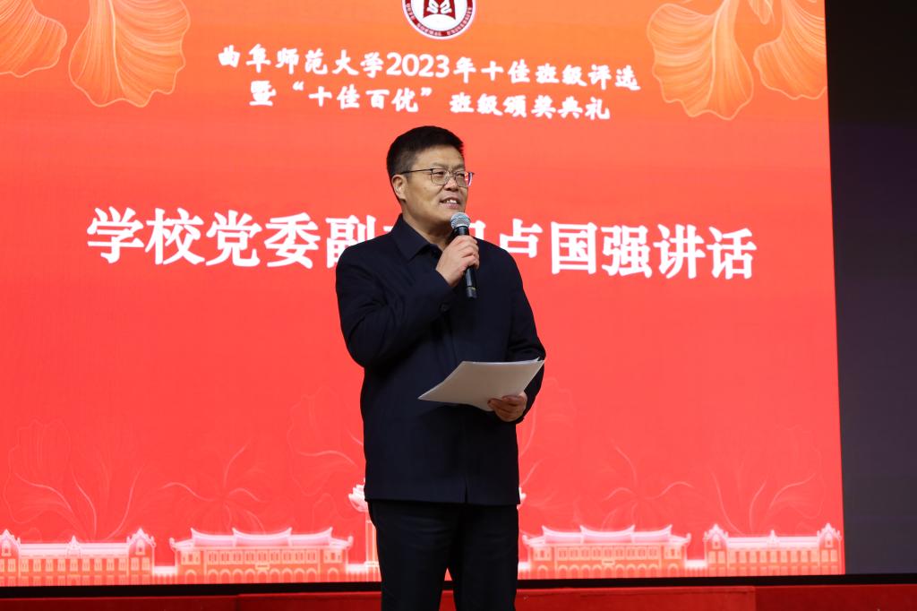 曲阜师大学生工作处讯   12月20-21日晚,曲阜师大2023年十佳班级评选展示会暨“十佳百优”班级颁奖典礼分别在两校区举行。22个十佳候选班级,分别进行了演讲和风采展演,并现场揭晓了十佳班级名单。党委副书记卢国强、副校长胡凡刚分别出席活动。学生工作处、校团委领导班子、各学院党委副书记担任评委,全体辅导员和学生代表观看了活动。