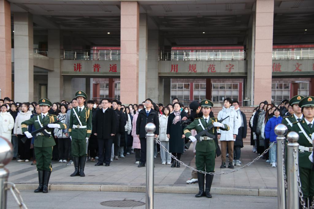 曲阜师大党委宣传部讯 一元复始,万象更新。1月1日,华体会官方网两校区隆重举行升国旗仪式,在爱国熏陶中不忘初心,在辞旧迎新中砥砺前行。副校长刘刚出席仪式,学生工作处负责人、辅导员及各学院学生代表参加升国旗仪式。