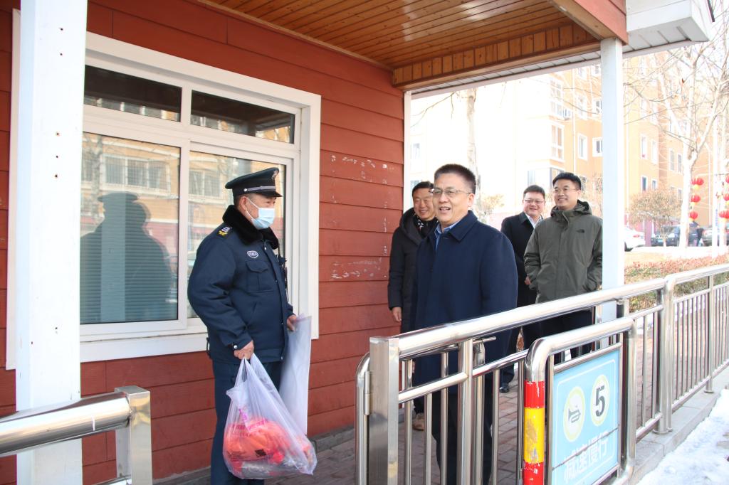 学校领导先后来学校大门、报警中心、物业服务中心、校医院等地看望坚守岗位的一线工作人员,对大家一年来为学校事业发展做出的贡献和牺牲节假日坚守工作岗位表示衷心感谢,同时致以节日的问候和新春的祝福并送上慰问礼品。每到一处,学校领导详细了解假期基础保障工作情况,询问在岗人员节日期间的生活情况,叮嘱大家在做好工作的同时,注意防寒保暖与身体健康,共同度过一个平安祥和的春节。
