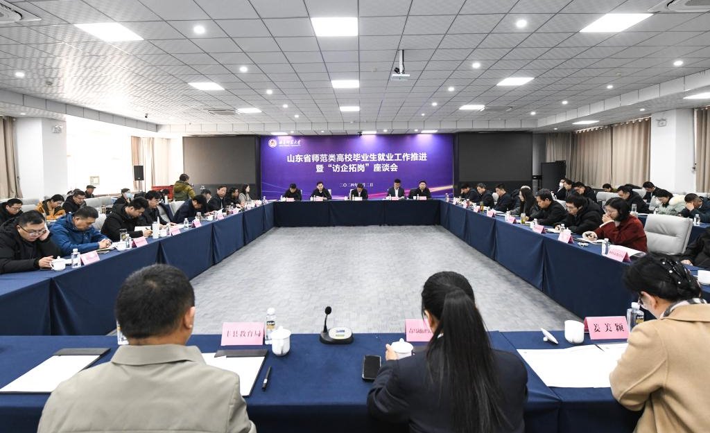 综合讯 为切实了解用人需求,促进供需双方精准对接,推进师范类高校毕业生高质量就业工作,3月2日上午,山东省师范类高校毕业生就业工作推进暨“访企拓岗”座谈会在华体会官方网召开。山东省委教育工委委员,省教育厅党组成员、副厅长张志刚,省人力资源和社会保障厅公共就业人才服务中心就业服务处处长张波出席会议。座谈会由省教育厅高校学生处处长梁立波主持。全省16地市教育(体育)局、人力资源和社会保障局相关负责人,济宁学院、德州学院等高校相关负责人,用人单位代表等参加会议。曲阜师大党委副书记卢国强在会上介绍学校就业工作典型经验。