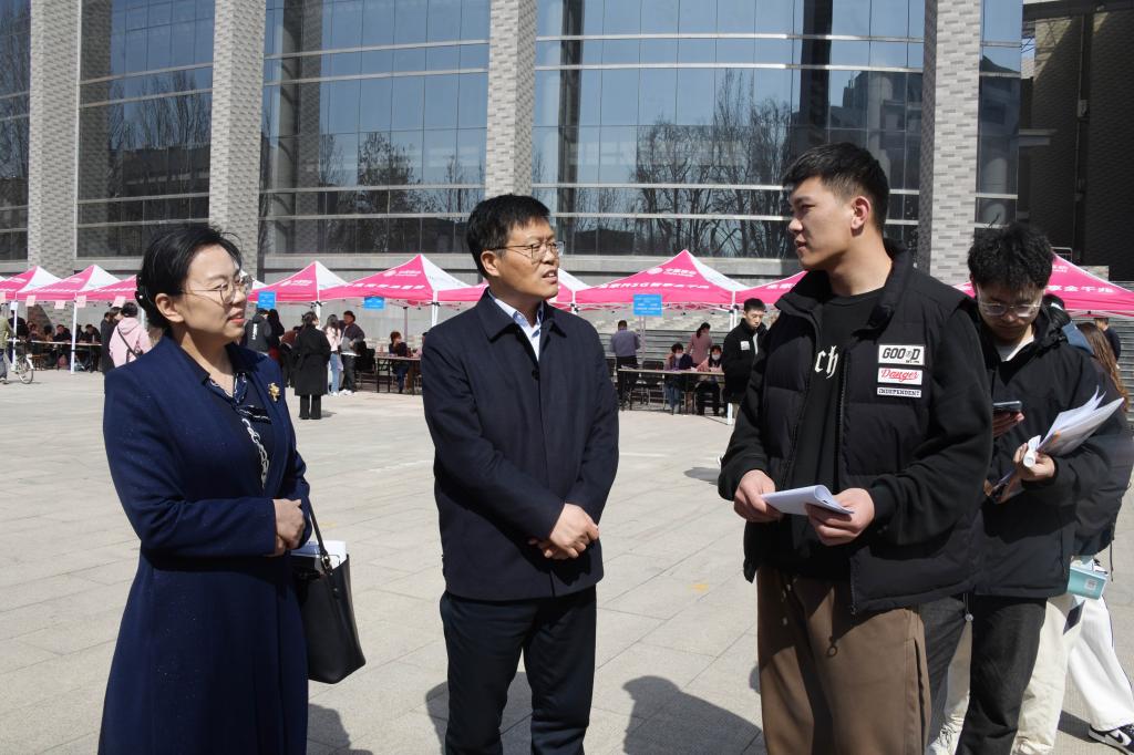 曲阜师大学生工作处讯  为充分发挥校园招聘主渠道作用,抓住春季招聘黄金期,推动毕业生高质量充分就业,3月21日—25日,学校邀请滨州市、北京市怀柔区等教育局,巨野县、郓城县、江苏省丰县等教体局来校进行招聘,本期校园招聘为毕业生提供了507个教师岗位。学校党委副书记卢国强,党委常委、副校长胡钦晓亲临现场检查指导。