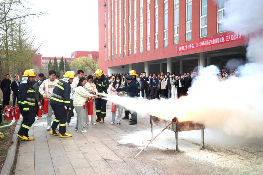 纪洪涛在讲话中指出,希望通过本次活动,进一步提升我校广大师生消防安全意识,增强消防自救能力,完善消防工作预案,增强团结协作精神,牢固树立起安全发展观,强化措施,扎实工作,落实责任,切实维护好师生员工的生命财产安全和校园稳定,为学校高质量发展保驾护航。
