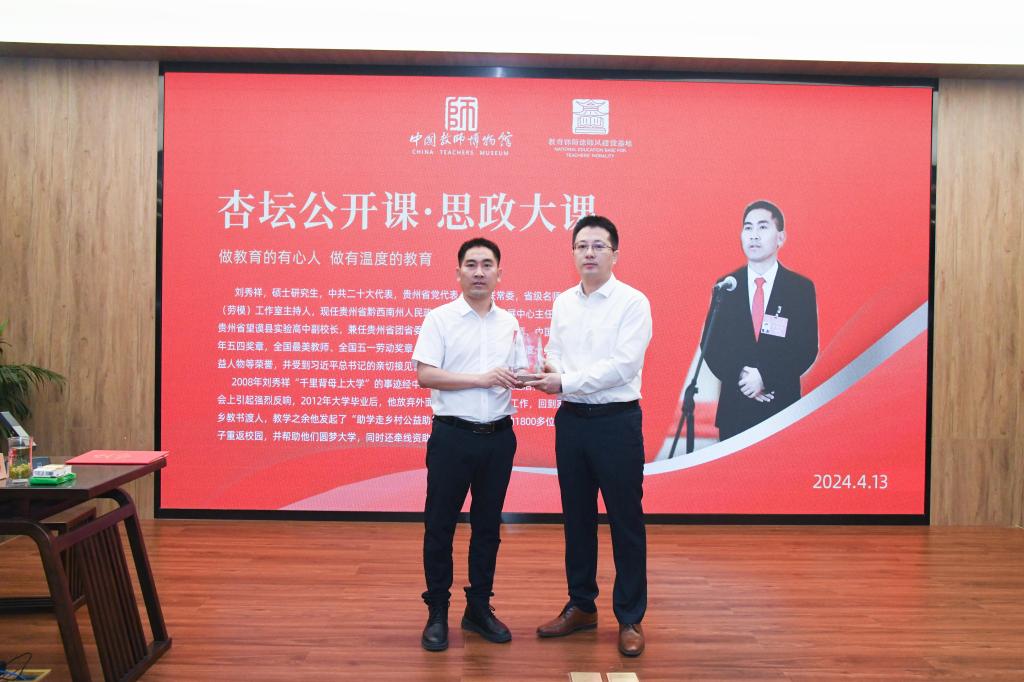 公开课上,刘秀祥结合自身工作和生活的经历,深情讲述了自己寒窗苦读立志求学、扎根深山教书育人的故事。他从“千里背母上大学”到毅然决然回到大山,做大山深处孩子的守梦人,坚持追求自己的人生梦想,也热心帮助大山的孩子追求梦想,从教10余年来,克服重重困难,通过“助学走乡村公益助学行动”让那些身处大山的孩子也能够圆梦大学,拥有未来。刘秀祥用真切的行动践行自己“在大山深处做教育的高地”这一理想信念,展示了新时代师德楷模的崇高风范。