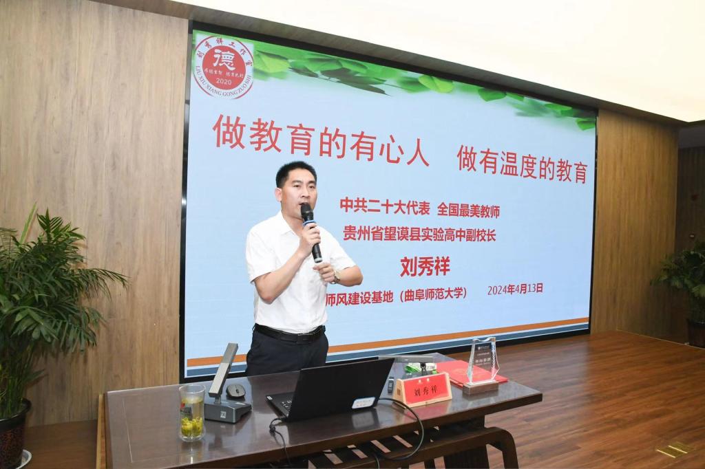 曲阜师大教师博物馆讯 4月13日,党的二十大代表、“全国最美教师”刘秀祥到访教师博物馆,并以《做教育的有心人,做有温度的教育》为题,讲述自己“从千里背母上大学”到做大山深处孩子守梦人的故事,为师生上了一堂生动的“杏坛公开课”。