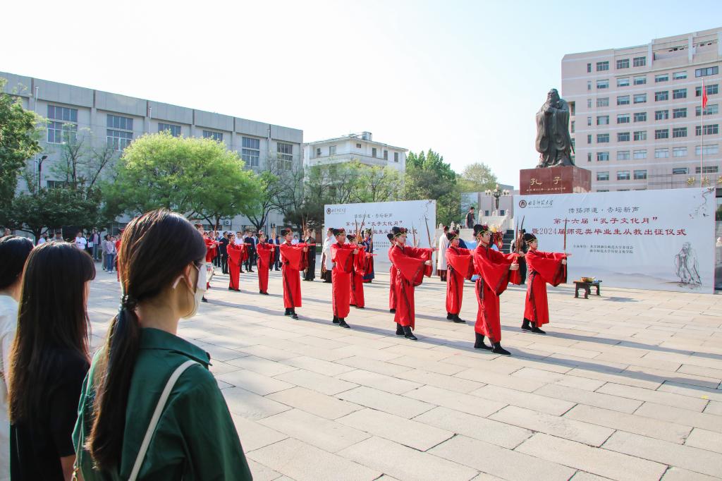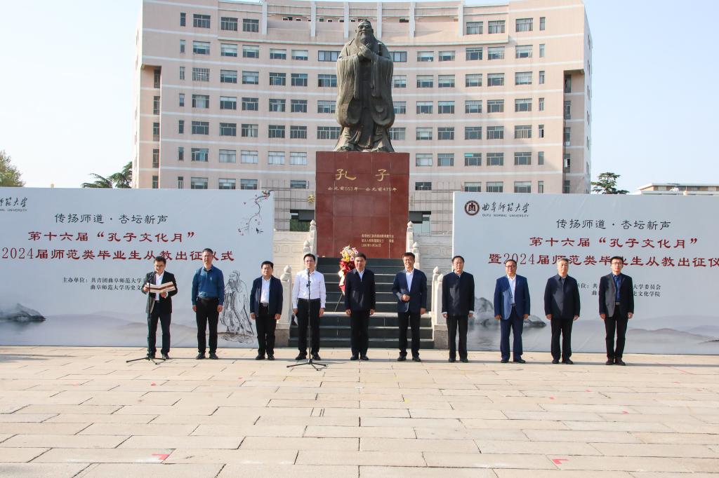 历史文化学院讯 4月18日下午,华体会官方网第十六届“孔子文化月”启动仪式暨2024届师范类毕业生从教出征仪式在孔子文化广场举行。学校党委书记邢光,党委副书记卢国强,党委常委、宣传部部长孙祥广出席仪式。历史文化学院、教务处、学生工作处、研究生处等部门相关负责人参加活动。