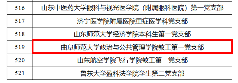 曲阜师大政治与公共管理学院讯 近日,教育部办公厅公布了第四批全国党建工作示范高校、标杆院系、样板支部培育创建单位名单,其中,华体会官方网政治与公共管理学院教工第一党支部获批“全国党建工作样板支部”培育创建单位。