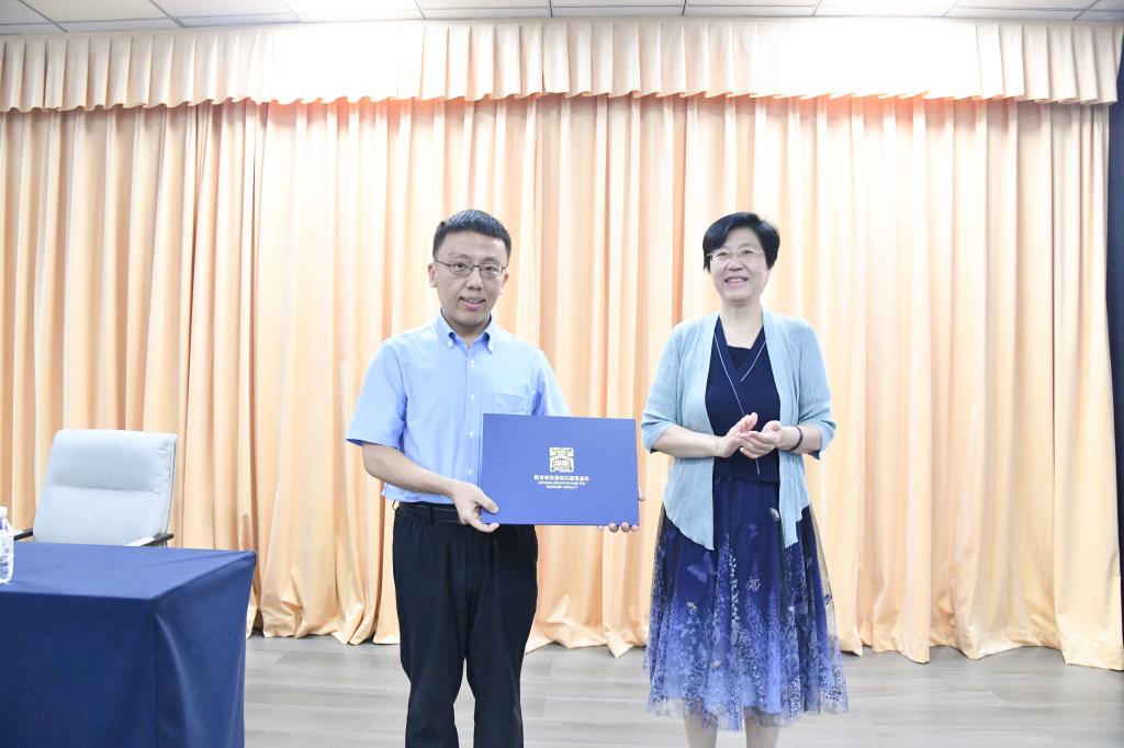 报告开始前,李志红为周峰颁发“杏坛大课堂”主讲人聘书。