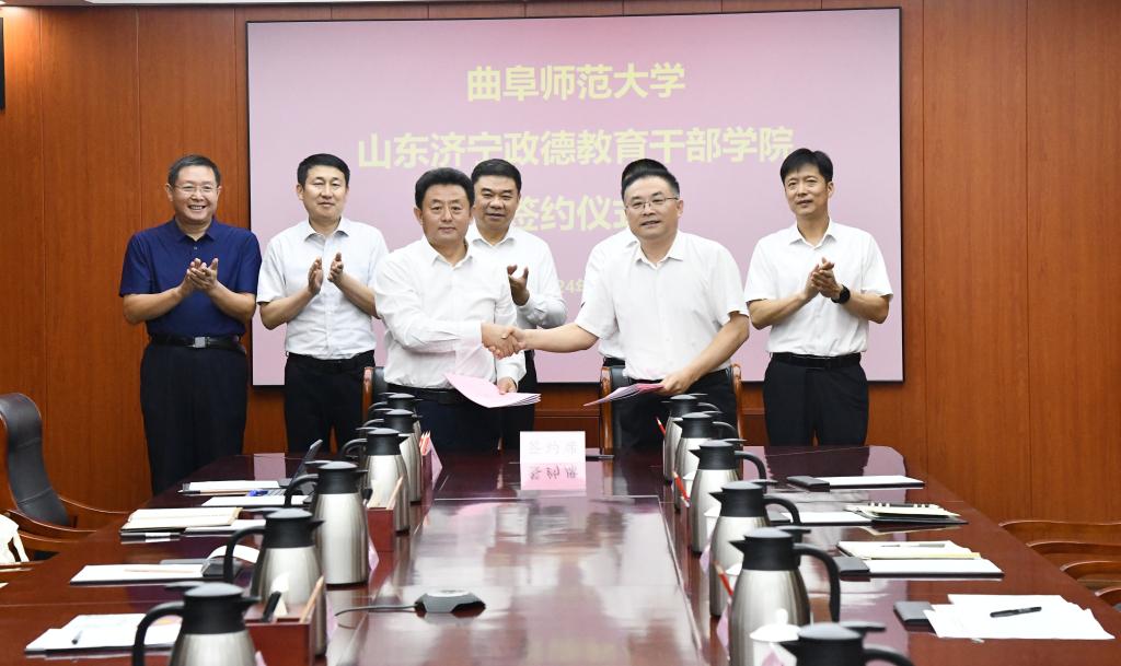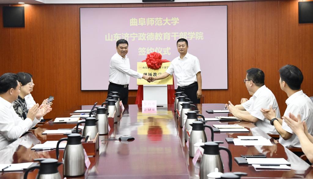 仪式由国内合作处处长孔宪福主持,学校办公室、党校、国内合作处、教师博物馆、历史文化学院等单位和山东济宁政德教育干部学院办公室、组织人事部、教务部、教学研究部、后勤保障部等部门的相关负责人参加了仪式。