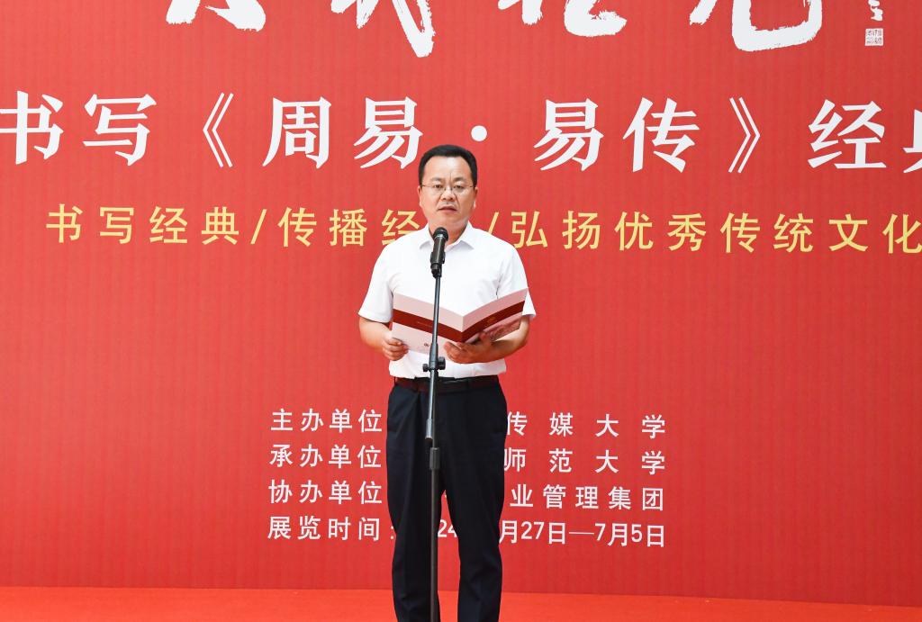 刘守安深情回忆了自己在曲园学习工作的美好时光,诚挚感谢母校曲阜师大的培养和支持。他表示,此次书法展旨在书写经典,传播经典,弘扬中华优秀传统文化,在书写文化研习中以浸润的方式让青年学生成为中华优秀传统文化的继承者、传播者、创新者,把中华优秀传统文化的审美志趣通过书法的形式表达出来,让更多人了解《周易》和中华文脉,奏响文明弦歌。