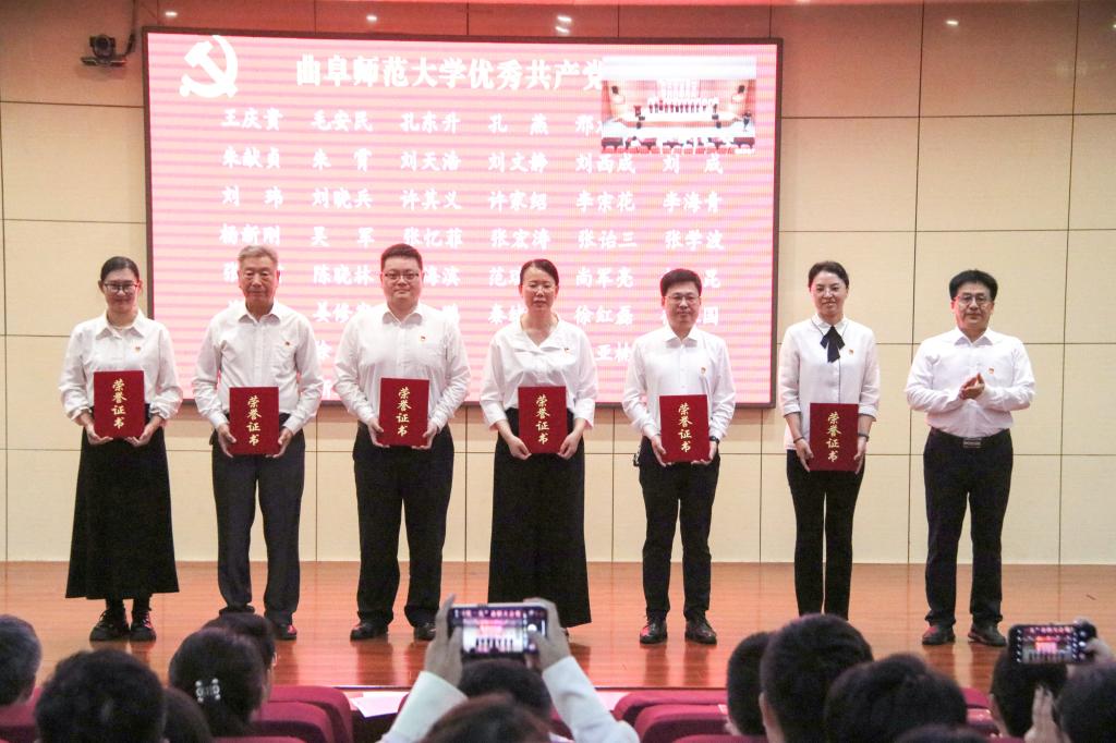 会上,邢光、胡凡刚分别在两校区为“光荣在党50年”老党员代表颁发纪念章。党委班子成员向受到表彰的先进个人和集体颁发了证书和奖牌。教育学院教授徐瑞,地理与旅游学院教授张学波,数学科学学院教工第一党支部书记魏云亮,翻译学院组织员、本科生第一党支部书记孙杰琼代表获奖先进个人和组织分别发言。