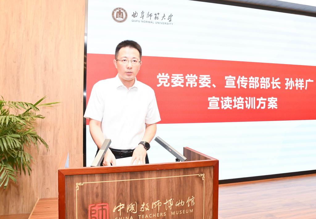 学校党委副书记李志红在开班仪式上领学了习近平总书记关于教育的重要论述,希望新入职教师树立“躬耕教坛、强国有我”的志向和抱负,深刻把握教育家精神时代内涵,以教师之强支撑高水平孔子家乡大学建设行稳致远。
