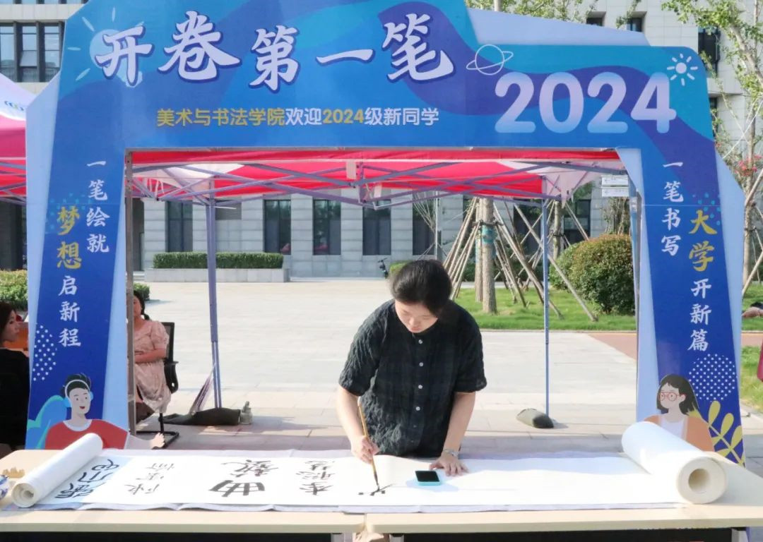 书法学院延续迎新特色传统——“开学第一笔”,组织新生在入学报到时运用自己擅长的书体在专门的长卷上写下自己的名字, “一笔书写大学开新篇”,长卷存录进学院为同学们打造具有专业特色的“成长档案”,与大学四年之后的毕业作品展相呼应,有“始”有“终”标注大学成长轨迹。