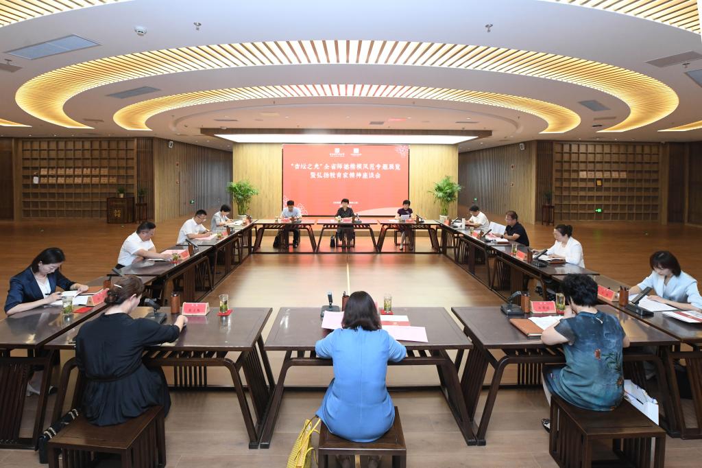 教师博物馆讯 在第40个教师节来临之际,9月1日,“杏坛之光”全省师德楷模风范专题展览暨弘扬教育家精神座谈会在华体会官方网举办。省教育厅副厅长孙晓筠出席并讲话。省教育厅教师工作处处长邵学伦、副处长刘依林,华体会官方网党委副书记李志红,党委常委、宣传部部长、教师博物馆馆长孙祥广等出席活动。