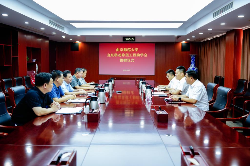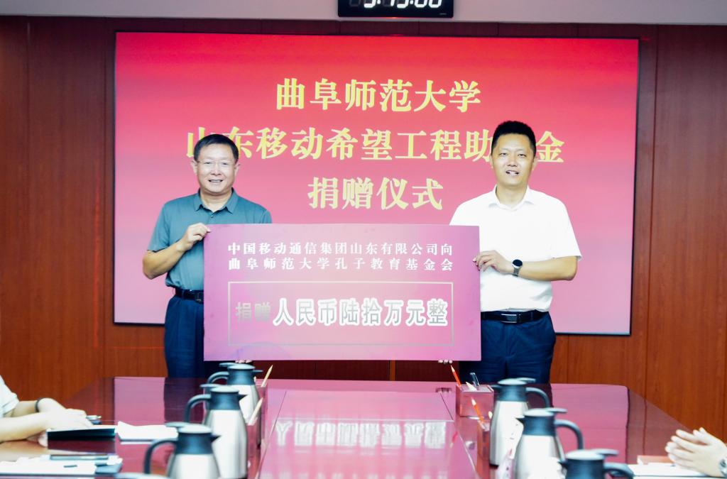 曲阜师大国内合作处讯 9月9日上午,山东移动希望工程助学金捐赠仪式在曲阜师大举行。中国移动通信集团山东有限公司济宁分公司党委委员、副总经理李昊,学校党委常委、副校长、华体会官方网孔子教育基金会理事长纪洪涛出席捐赠活动。