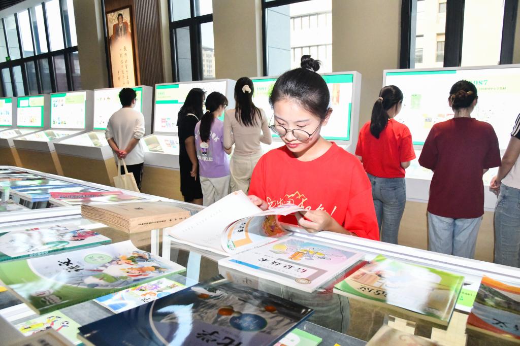 展览作为教师博物馆“课本馆”的核心内容,集中展示了70多年来出版的部分人教版教材,百余名师生代表参观展览,直观体验了“尺寸教材,国之大者”的育人价值,感受新中国教材建设事业的伟大成就。