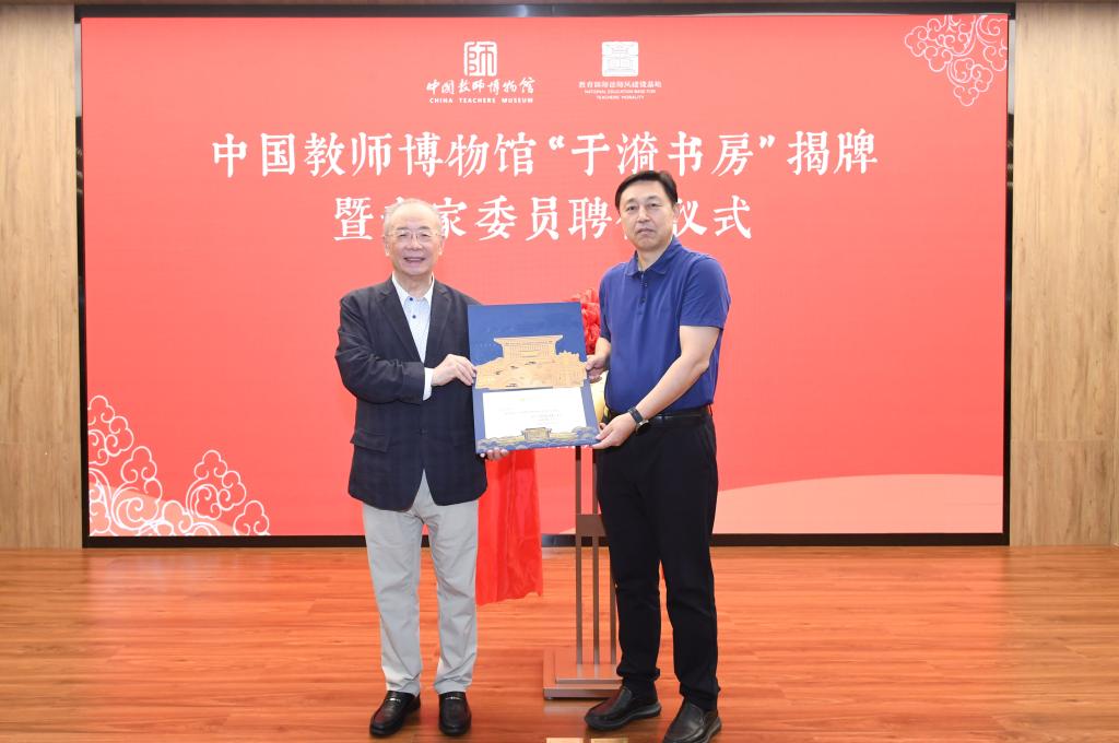 王荣华、张洪海共同为“于漪书房”揭牌,张洪海为王荣华颁发教师博物馆专家委员聘书。