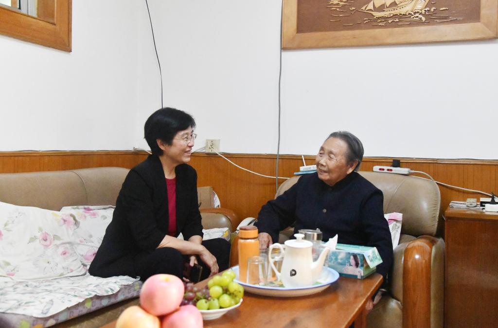 曲阜师大离退休工作处讯    金风送爽秋光艳,丹桂飘香又重阳。重阳节来临之际,学校党委副书记李志红走访慰问了学校百岁离休干部经济民教授和李素萍老人,代表学校向老人们送去关怀与温暖,表达节日的祝福和诚挚的敬意。