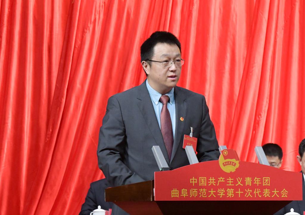 学校党委书记邢光代表学校党委向大会的召开表示祝贺,并充分肯定了第九次团代会以来学校共青团的工作。邢光指出,校团委认真履行党赋予的职责使命,发扬“党有号召,团有行动”的光荣传统,努力适应时代发展新趋势,积极应对青年需求新变化,围绕中心、服务大局,在思想引领、校园文化、社会实践、志愿服务、创新创业等方面做了大量卓有成效的工作,开创了曲阜师大共青团工作的新局面。