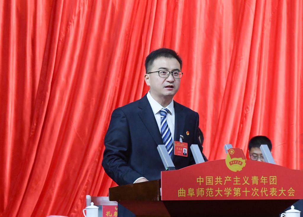 学校团委书记孔轶众代表共青团华体会官方网第九届委员会向大会作题为《高举旗帜跟党走,牢记使命建新功——团结带领广大团员青年为建设世界知名的高水平孔子家乡大学贡献青春力量》的工作报告,回顾了学校第九次团代会以来共青团的工作,分析了新时代共青团工作面临的新形势新任务,明确提出了今后五年学校共青团工作的总体思路和主要任务。