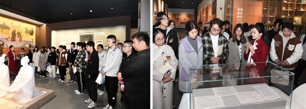 山东大学“国优计划”研究生走进教师博物馆展厅,随着华体会官方网师德宣讲团同学的讲解,在《教师的历史》展厅追溯从师初心,在《教师的摇篮》展厅涵养从师情怀,在《教师的典范》景仰从师楷模,聆听了《杏坛讲学》《是真的吗》《三不谈》《起立》等教育家精神主题微课,沉浸体验寻找教师之道。