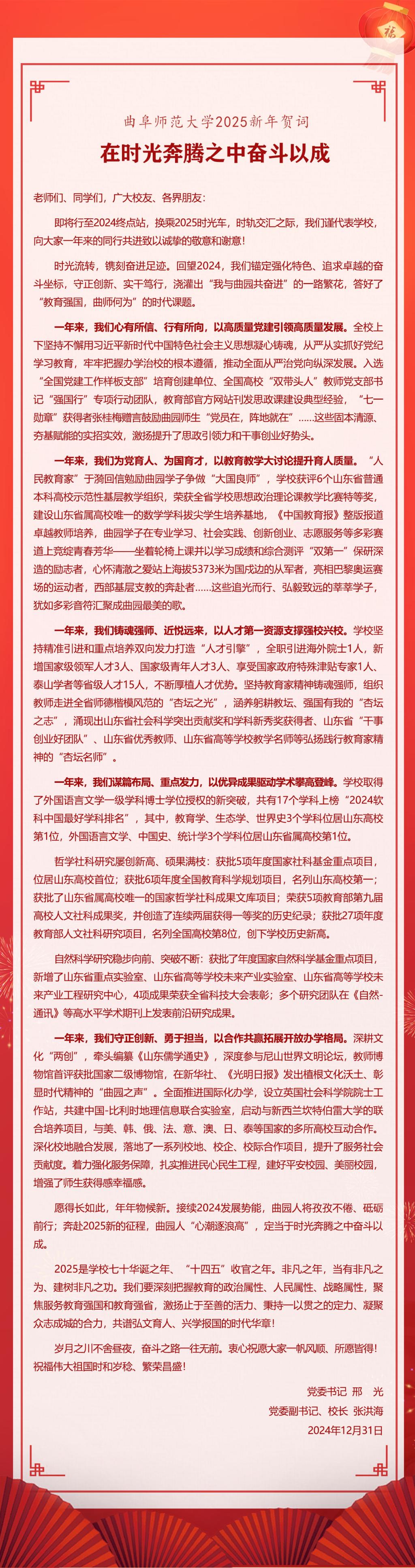 | · | 曲阜师大举办“盛世国乐 雅韵中华”2025新年音乐会 | 2025/01/03 |
