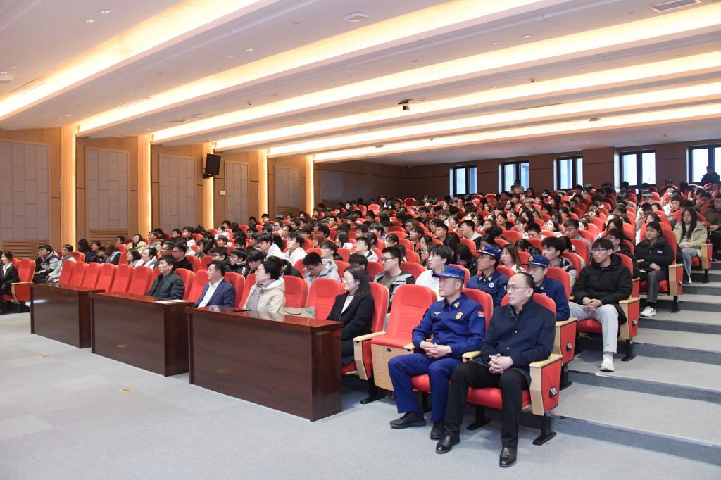 纪洪涛在致辞讲话中强调了消防安全的重要性,他指出,寝室作为学生生活的重要场所,是火灾防控的重点区域。希望全体参训学员通过此次培训强化责任担当,真正成为消防安全的行家里手,为建设平安和谐校园贡献青春力量。