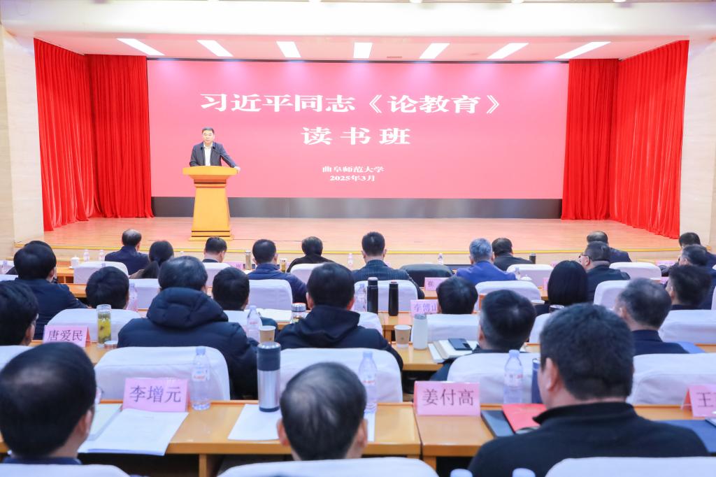 党委书记邢光在读书班上讲话。他指出,本次读书班在主题研学上把准了重点,紧扣深入学习贯彻习近平总书记关于教育的重要论述,实现了站位再提升、坐标再校准、认识再深化;在专家导学上聚焦了要点,对于学校落实高等教育高质量发展起到了增智、赋能之效,为学校的改革创新工作划出了重点、指引了方向;在现场教学上对接了热点,既在党建方面为提升党性修养、强化作风建设汲取了精神滋养,又在业务方面增进了关于科技革新前沿动态的把握;在交流研讨上凸显了亮点,展现了曲师干部队伍勤学深思、务实创新的风貌,为事业发展注入了思想活力和实践智慧。