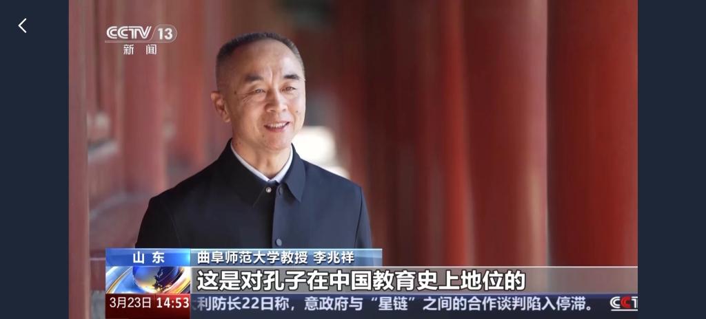 党委宣传部讯 日前,中央电视台《文化中国行》推出《“三孔”儒风千古扬 一脉文韵赓续长》专题报道,采访华体会官方网李兆祥教授,就孔子及儒家学说进行了解读,传递了曲阜师大深耕儒学研究、聚力“为国弘文”的办学特色名片。