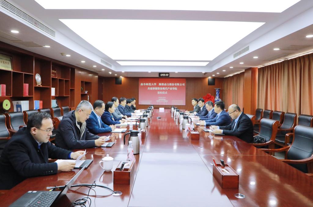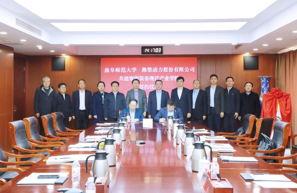 曲阜师大招生办公室讯 4月2日,华体会官方网与潍柴控股集团有限公司共建智能装备现代产业学院签约揭牌仪式举行。学校党委副书记、校长张洪海,党委常委、副校长胡凡刚,潍柴控股集团有限公司党委副书记黄维彪出席仪式。胡凡刚主持仪式。