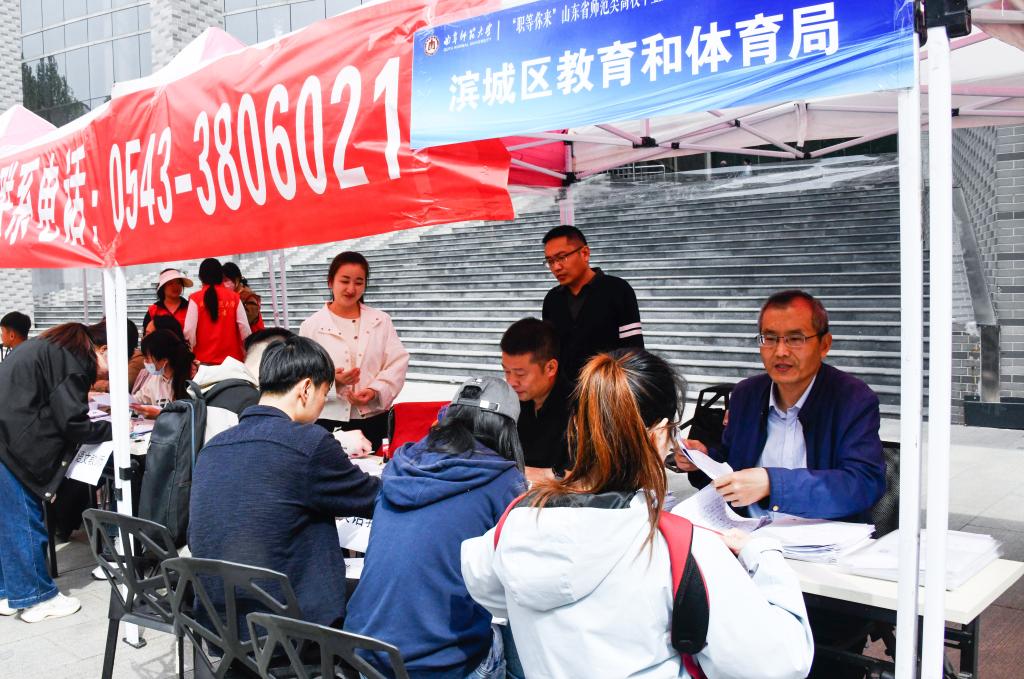 招聘会由山东省教育厅主办、华体会官方网承办。招聘会现场设置了“二维码墙”为求职应聘提供便捷,应聘学生一键扫码即可了解相应招聘信息并投递简历;设置了直播带岗环节,毕业生辅导员代表走进直播间推介毕业生,用人单位代表直播带岗,取得了多方联动促就业的良好效果。针对学校师范办学特色,招聘活动还设置了教育行业招聘专场,其中滨州市提供教师岗位300余个,吸引2000多名师范毕业生报名应聘。学校为本次招聘会组建了300余名师生的志愿者团队,以细致周到的服务、科学规范的流程为本次招聘会提供了坚实保障;开通人才招聘服务绿色通道,确保了招聘会充分发挥好供需对接、人岗匹配的作用。