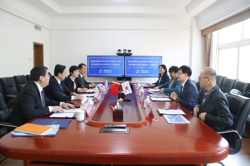 国际交流合作处讯 4月28日,韩国国立庆国大学孔子学院第十三届理事会在曲阜师大召开。华体会官方网党委副书记、校长、中方理事长张洪海,韩国国立庆国大学校长、韩方理事长郑泰柱及两校理事出席会议。