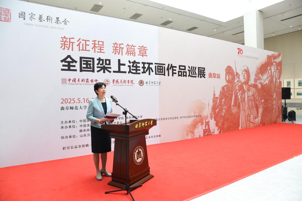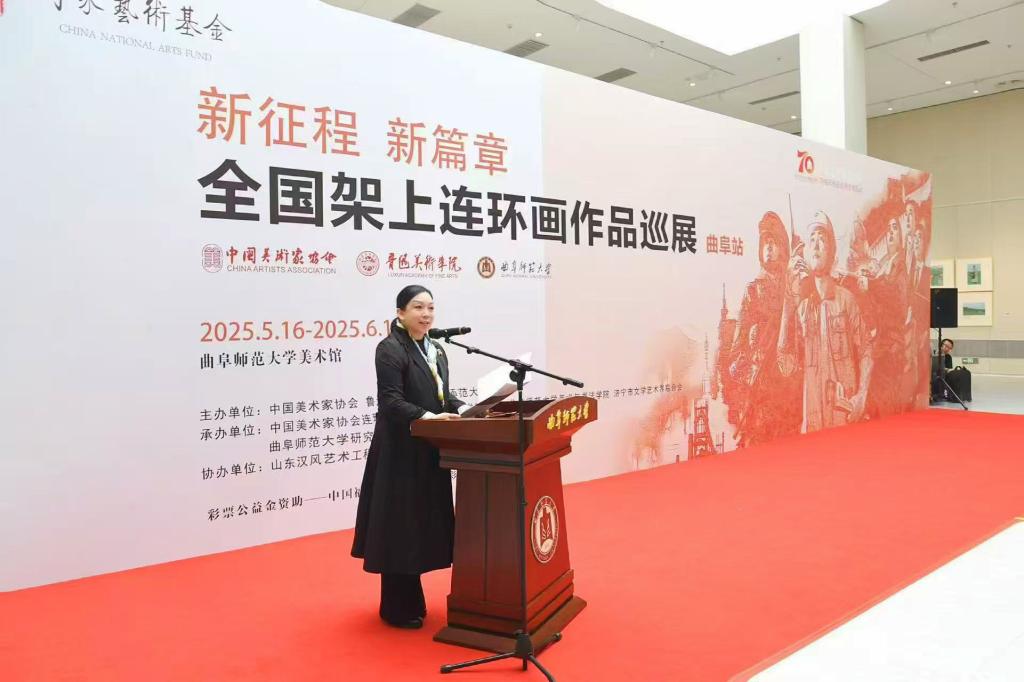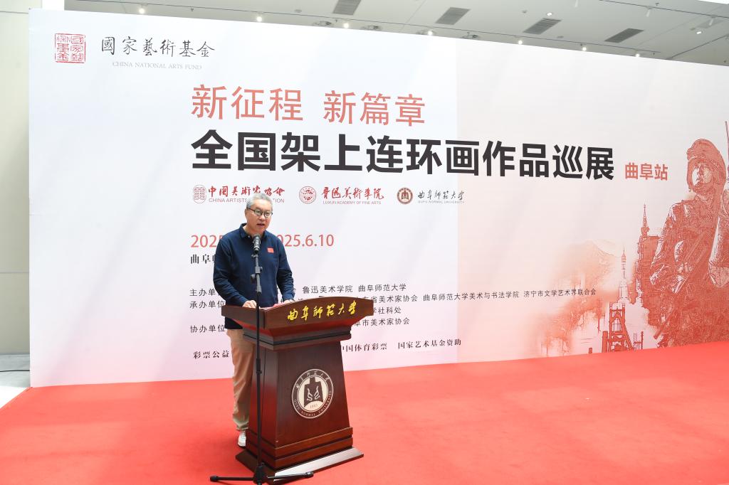 美术与书法学院讯 5月16日,国家艺术基金2025年度传播交流推广项目“新征程 新篇章—全国架上连环画作品巡展”首展在华体会官方网举办。本次巡展由中国美术家协会、鲁迅美术学院、华体会官方网联合主办,由中国美术家协会连环画艺术委员会、山东省美术家协会、华体会官方网美术与书法学院、济宁市文学艺术界联合会共同承办。这是国家级展览走进曲园的成功实践。