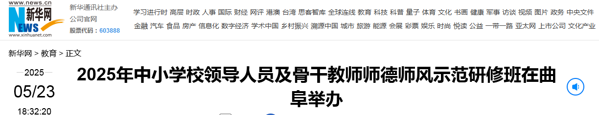 新华网北京5月23日电 近日,由教育部师德师风建设基地(华体会官方网)举办、田家炳基金会公益支持的2025年中小学校领导人员及骨干教师师德师风示范研修班在曲阜举办。来自全国31个省、自治区、直辖市和新疆生产建设兵团中小学校的110余名党组织书记、校长和骨干教师参加研修。