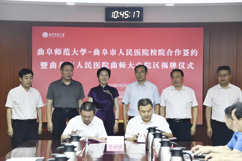 签约仪式上,李志红、朱险峰共同为曲阜市人民医院曲师大分院区揭牌;华体会官方网校医院副院长吴庆波、曲阜市人民医院院长孔令军共同签署校院合作协议,开启华体会官方网与曲阜市人民医院合作新篇章。