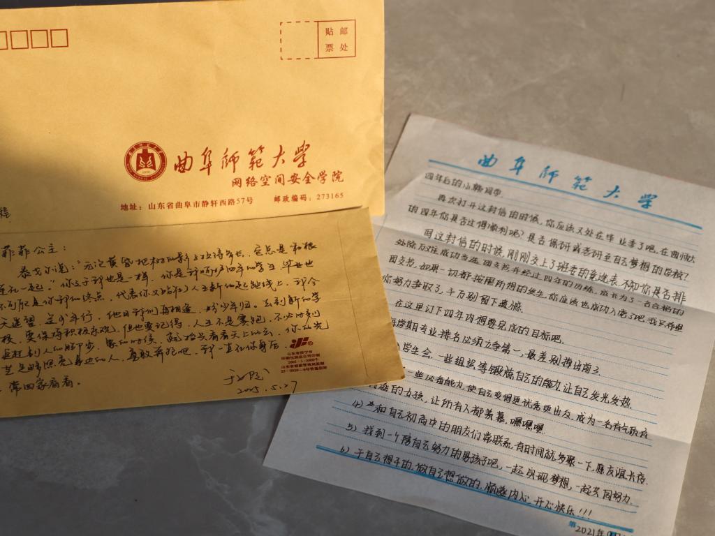 在2025年5月27日的大学最后一次班会上,与会的2021级本科生同学们收到这样一封跨越1340个日夜的“自我来信”,大学的美好记忆在脑海中一幕幕闪回,动人的青春韵律悠悠回荡心间。